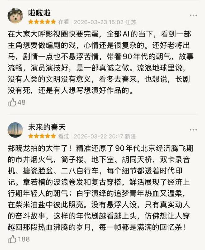 自播出以来,该剧凭借扎实的创作功底与真诚的情感表达,在微博、抖音、小红书、豆瓣等多平台引发持续热议,收获观众与业内的双重认可。