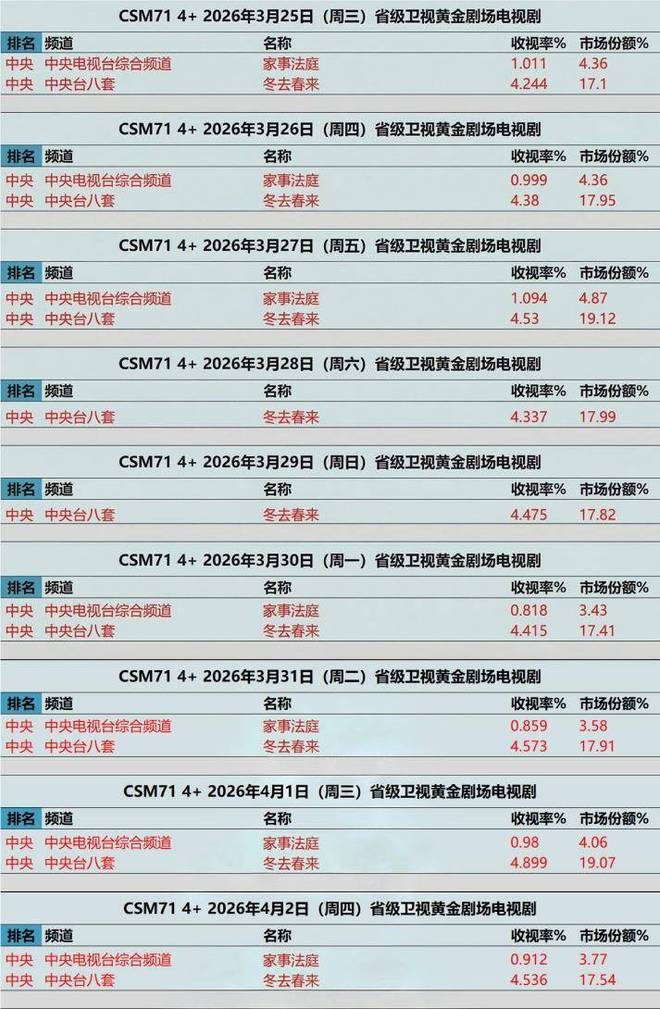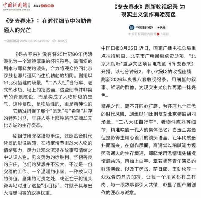 《冬去春来》收视超《狂飙》《生万物》等,央八史冠连续破4